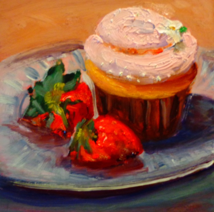 Day 15 of 30 paintings in 30 days. Cupcakes and strawberries are always enjoyable to paint and to eat. My daughter, Emily, had to wait for dessert until I finished the painting but it was worth the wait.