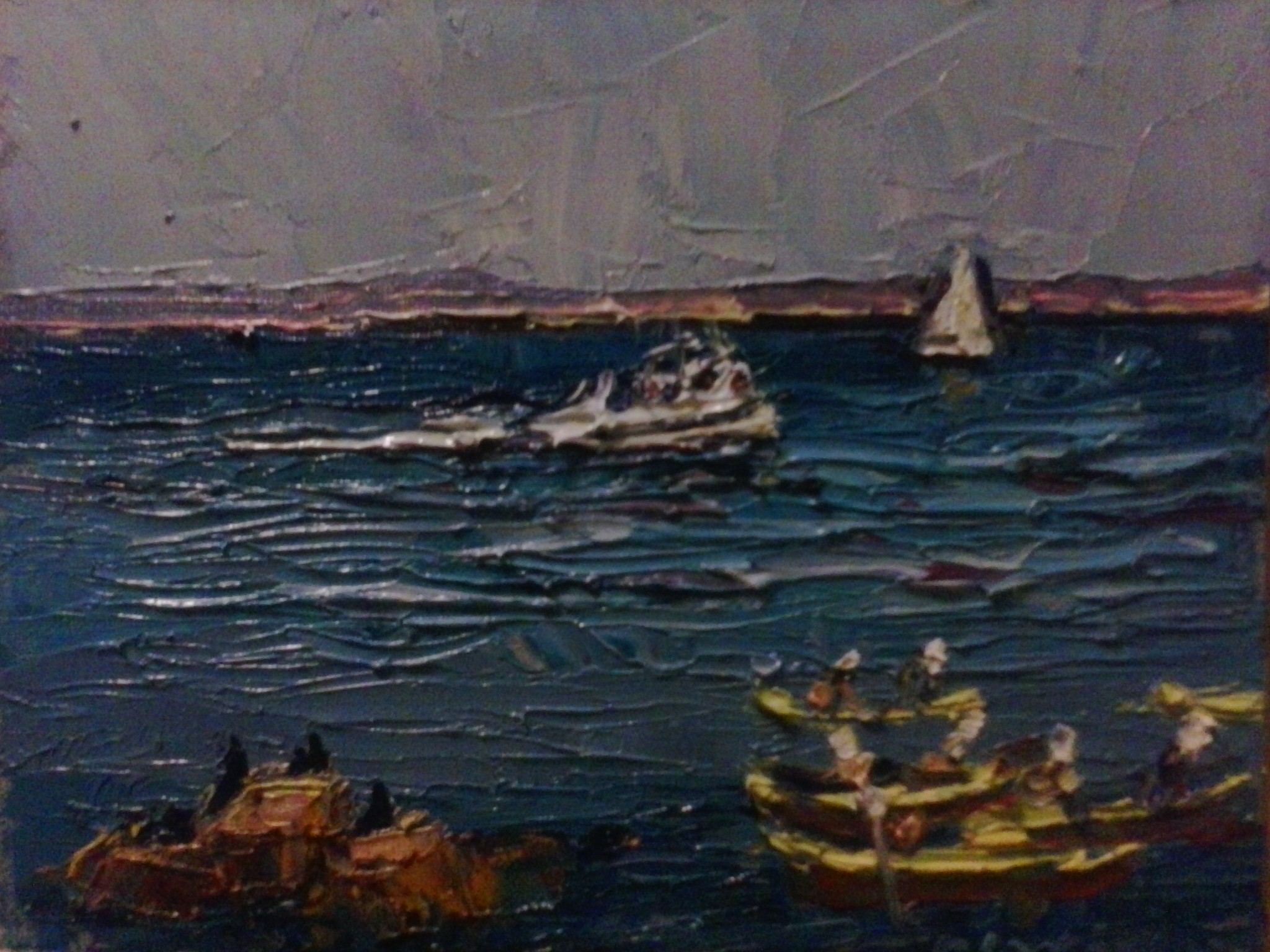 Continuing with the theme of transportation I painting this from a photo that my daughter took when we were in the Carmel/Monterey area. Everybody was out enjoying the day, including the seals.