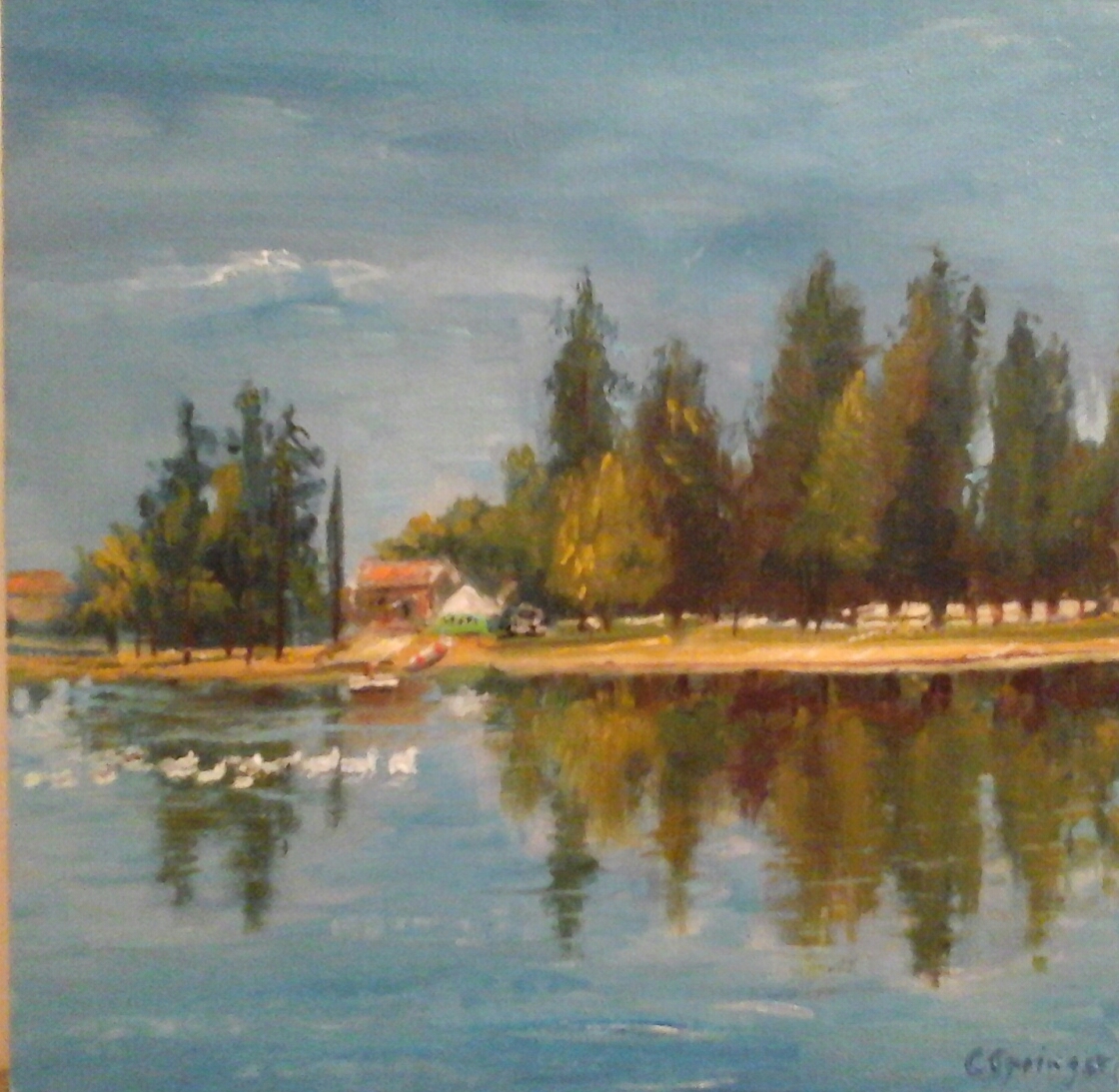 10 x 10 in oil on board. Painting again with my dear friend, Karen, at beautiful Ellis Lake in Marysville, Ca.